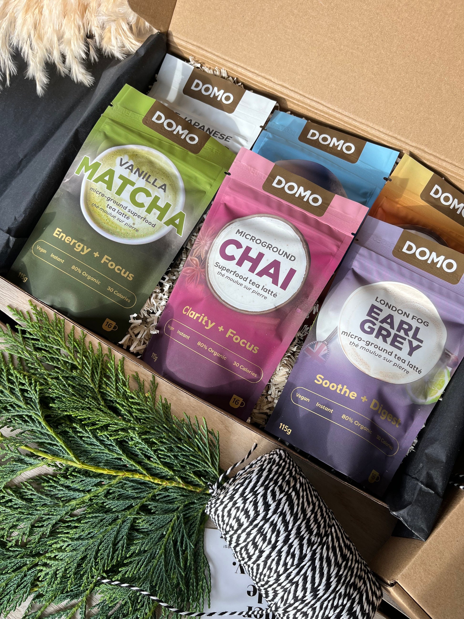 Your favorite superfood tea latte blends all in one box. The Domo Six-Pack Box lets you try all six micro-ground tea blends from our collection at an unbeatable value. Perfect for stocking up, trying something new, or gifting, this is your chance to enjoy more of what you love while saving big and supporting local.